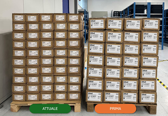 – un aumento della capacità di carico per ogni pallet del 78% passando da 28 a 50 pezzi