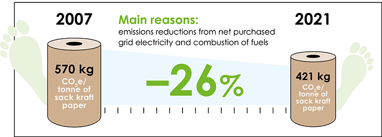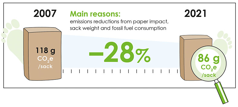 Continuous improvement of CO2 footprint of paper sacks