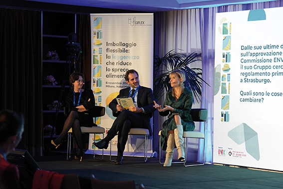 Prestigious institutional presences confirmed Giflex’s constant dialogue with politics. On the hottest topics of the day spoke: Maria Chiara Gadda, Vice President of the Agriculture Commission of the Chamber of Deputies, author of Law 166 on food waste; Diego Invernici, Regional Councilor and member of the Productive Activities, Education, Training and Employment Commission of Lombardy Region; Francesca Siciliano Stevens, Managing Director EUROPEN; Silvia Sardone, MEP and member of the Environment Commission (ENVI) of the European Parliament.