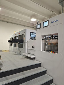 The EasyMatrix 106 CS installed at Stampare is a 74×104 format die-cutting machine, equipped with an extraction section, with a speed of up to 7,700 sheets/hour. The “raised” configuration allows for processing not only folding carton, but also thicker materials such as corrugated cardboard, opening up new applications.