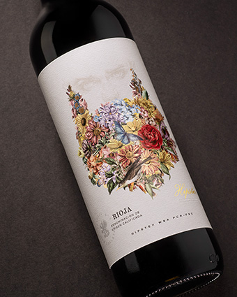 - HIPSTER WSA PCR-FSC (100% recycled fibers) – Created for high-quality wine and spirits labeling applications, it has a warm and elegant white shade that is combined with a delicate, uneven, felt marked surface that enables the creation of labels with unique personality. Estudio Calcco used this material to create the wine bottle label design.