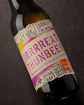 - VINTAGE WSA PCR-FSC (30% recycled fibers) – This material is ideal for use in wine, spirits and beverage labeling applications where an authentic and artisanal look is desired, as it has a kraft brown shade to it. Bulldog Studio used this material to create the craft beer bottle label design.
