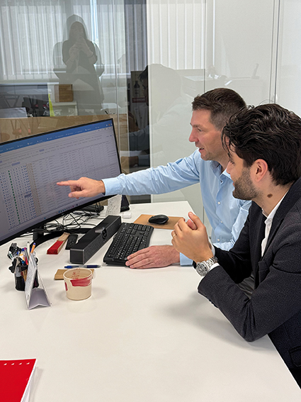 Pasquale Raffoul (il primo), Senior Analyst di Noratech, e Toni Vila Carqués (indica il pc), direttore generale di Ondulados Carme