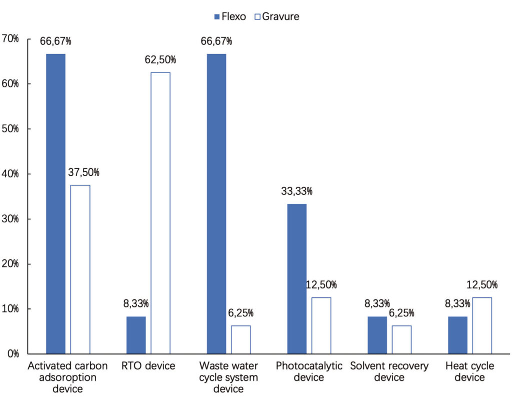Il 75% delle aziende flessografiche intervistate ha già ottenuto una o più certificazioni ambientali (come FSC o sistemi di gestione ambientale), contro il 31,25% delle aziende rotocalco. Anche sul fronte del trattamento delle emissioni, le differenze sono evidenti: le aziende rotocalco, che utilizzano inchiostri più impattanti, devono ricorrere con maggiore frequenza a sistemi RTO (ossidatori termici rigenerativi), mentre nella flessografia è spesso sufficiente un trattamento a carbone attivo.